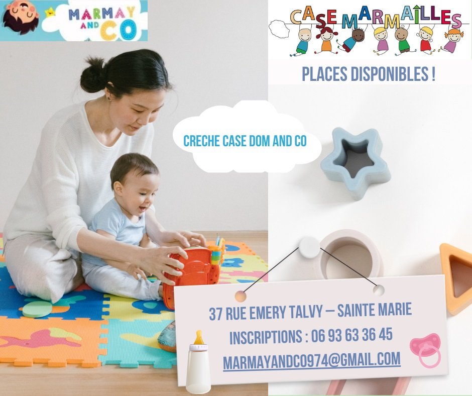Nous vous informons que des places sont disponibles au sein de notre crèche Dom and Co située à Sainte Marie. Si vous souhaitez inscrire votre enfant et avoir plus de renseignements contactez nous au : 06 93 63 36 45